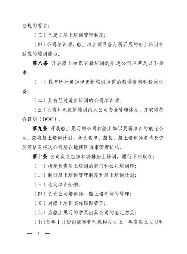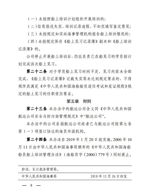 中華人民共和國(guó)海事局關(guān)于印發(fā)《中華人民共和國(guó)海船船員船上培訓(xùn)管理辦法》的通知