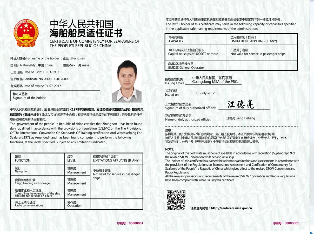 中華人民共和國(guó)海船船員適任證書